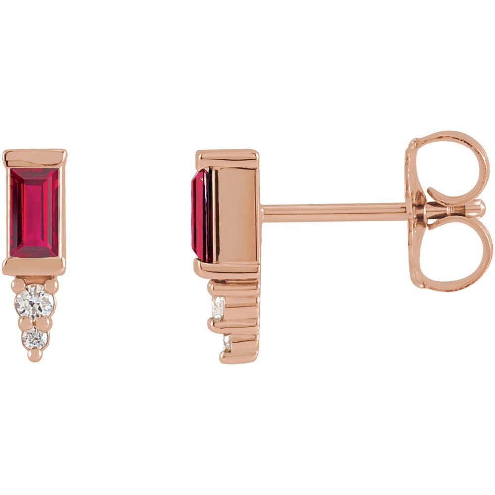 14k Rose Gold Ruby and 0.04 cttw Diamond Bar Stud Earrings (G-H, I1)