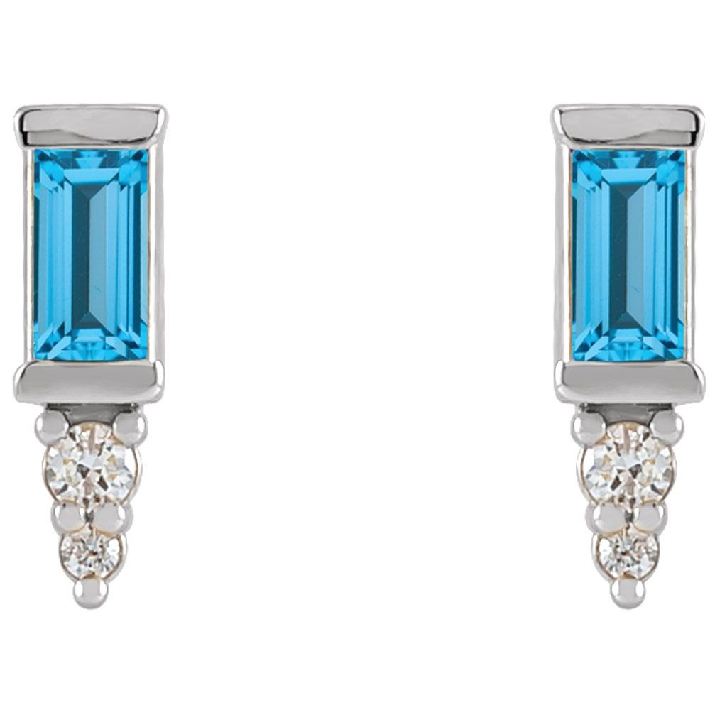 Sterling Silver Swiss Blue Topaz and 0.04 cttw Diamond Bar Stud Earrings (G-H, I1)