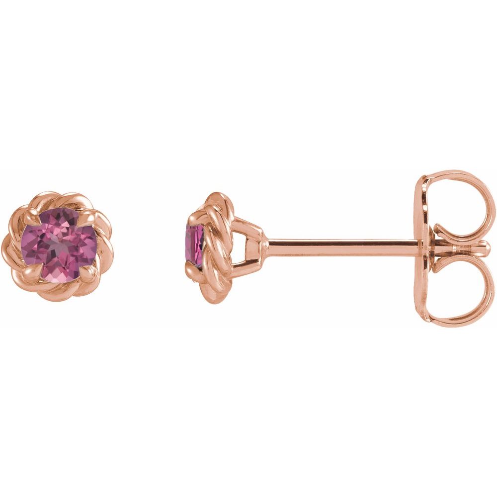 14k Rose Gold 4.5mm Round Shape Pink Tourmaline Claw-Prong Rope Stud Earrings