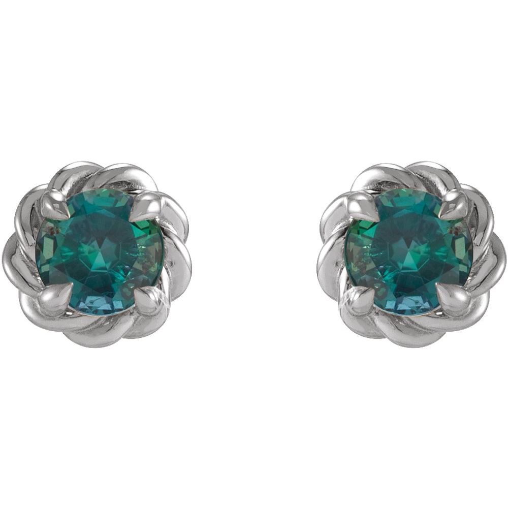 Platinum 5mm Round Shape Lab-Grown Alexandrite Claw-Prong Rope Stud Earrings
