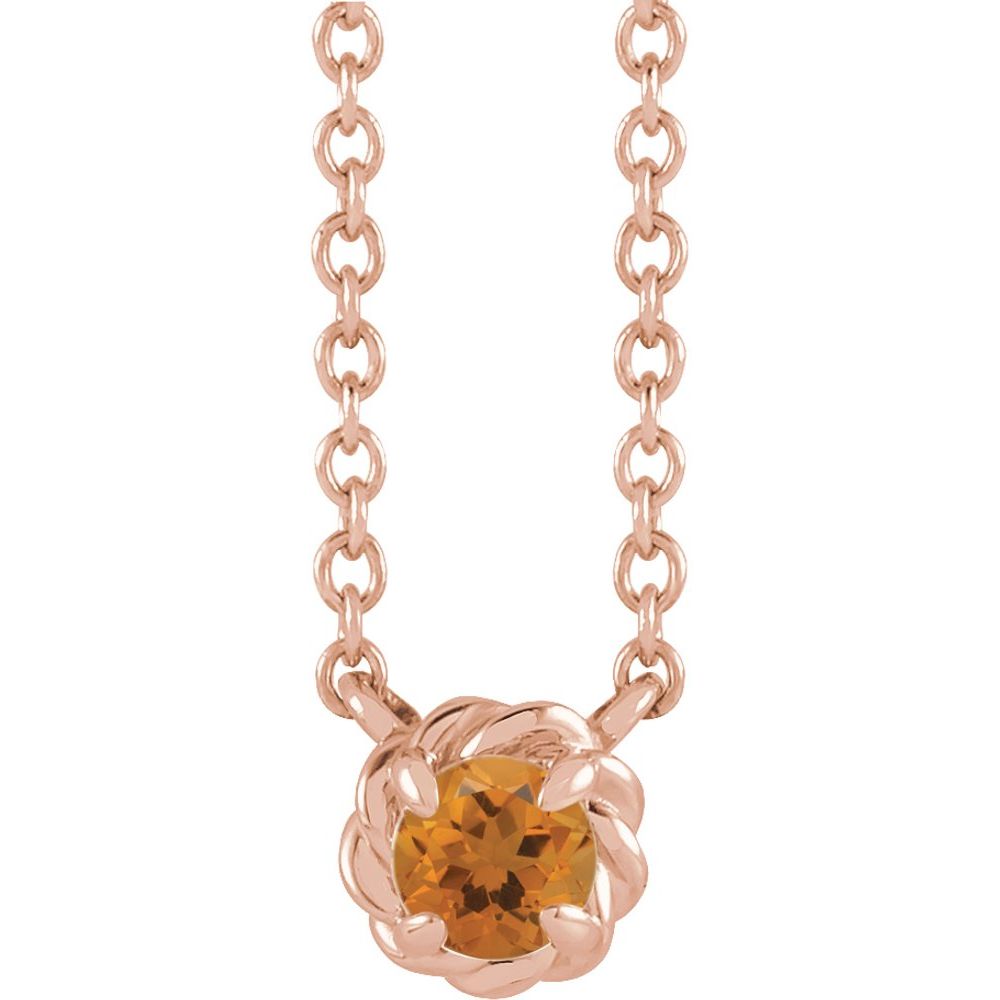 14k Rose Gold 4.5mm Round Shape Citrine Claw-Prong Rope Solitaire Necklace (6.51x6.44mm), 18"
