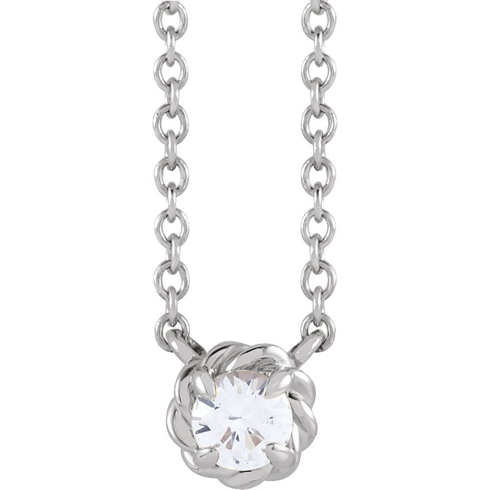 Platinum 4.5mm Round Shape White Sapphire Claw-Prong Rope Solitaire Necklace (6.86x6.78mm), 18"