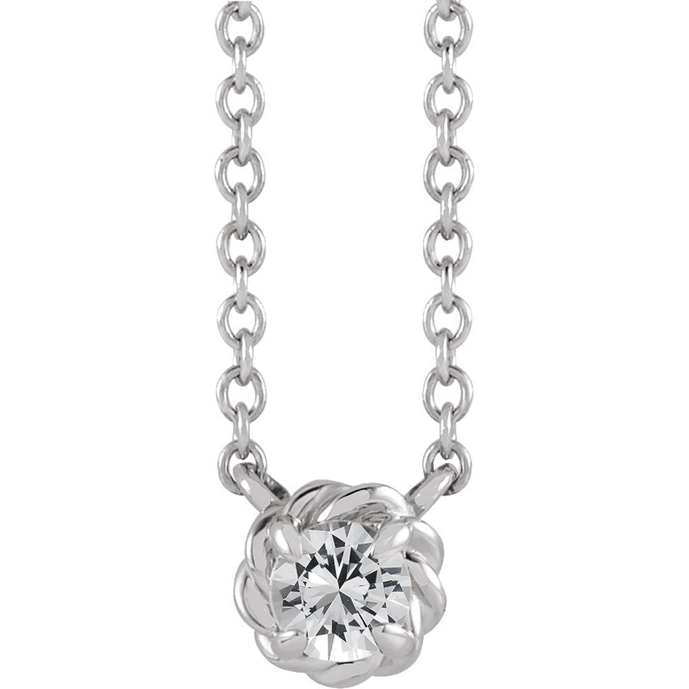 Platinum 5mm Round Shape White Sapphire Claw-Prong Rope Solitaire Necklace (6.86x6.78mm), 18"