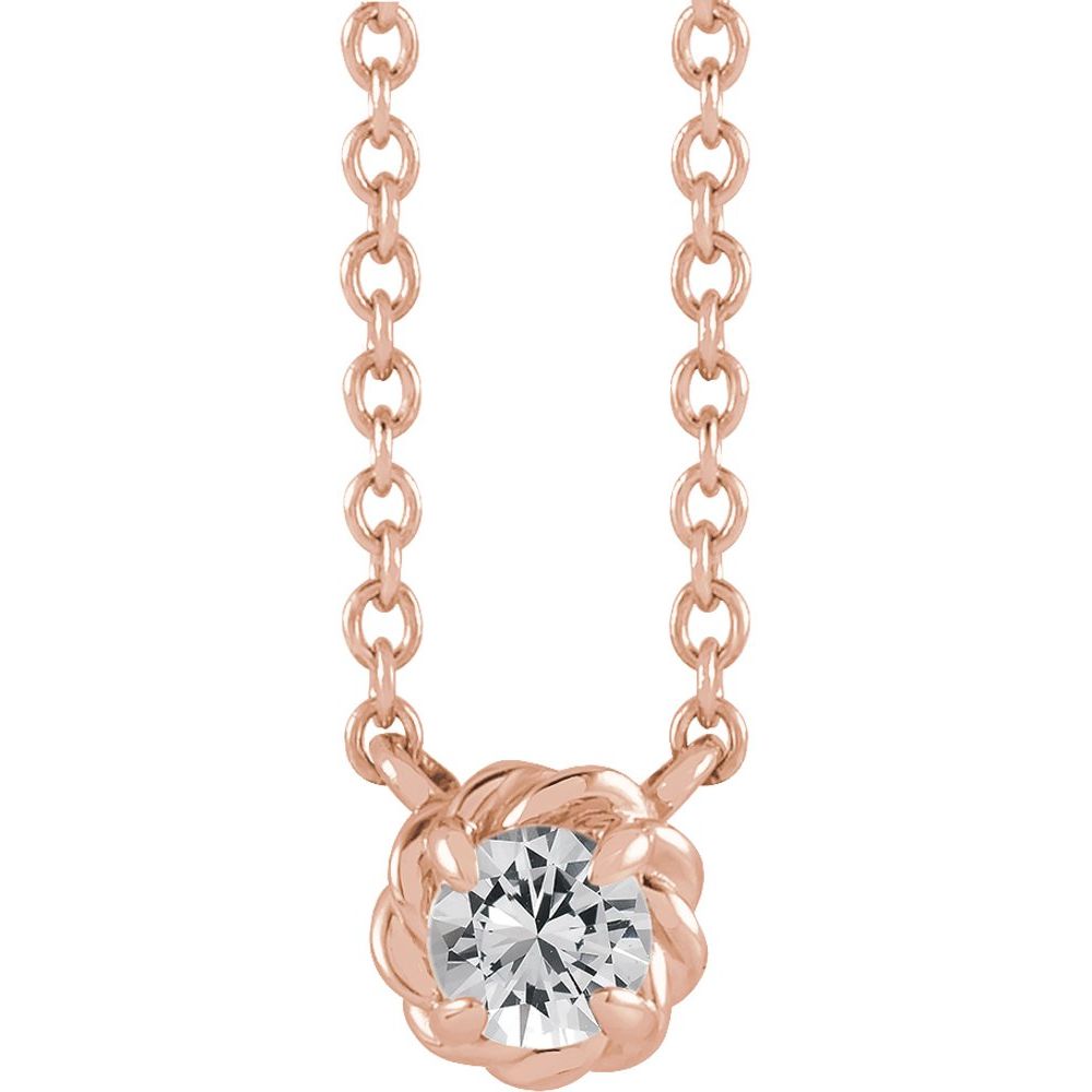 14k Rose Gold 3mm Round Shape White Sapphire Claw-Prong Rope Solitaire Necklace (4.74x4.69mm), 18"