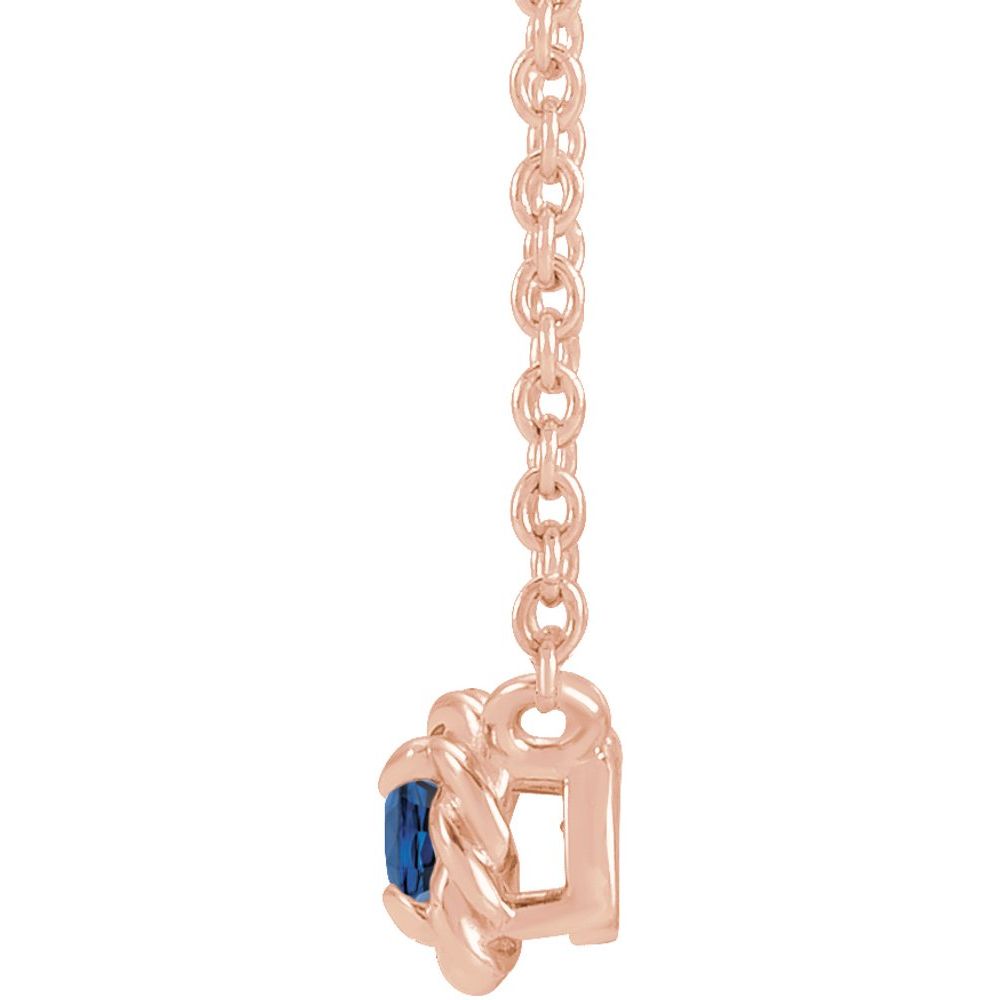 14k Rose Gold 3mm Round Shape Lab-Grown Blue Sapphire Claw-Prong Rope Solitaire Necklace (4.74x4.69mm), 18"