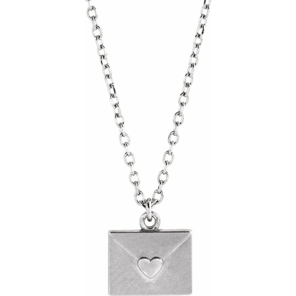 Sterling Silver Heart Shape Envelope Necklace (8x6.25mm), 16-18"