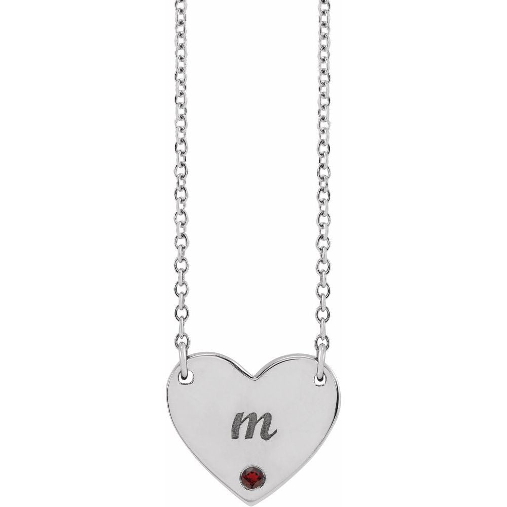 Description: Sterling Silver Mozambique Garnet Engravable Heart 18" Necklace