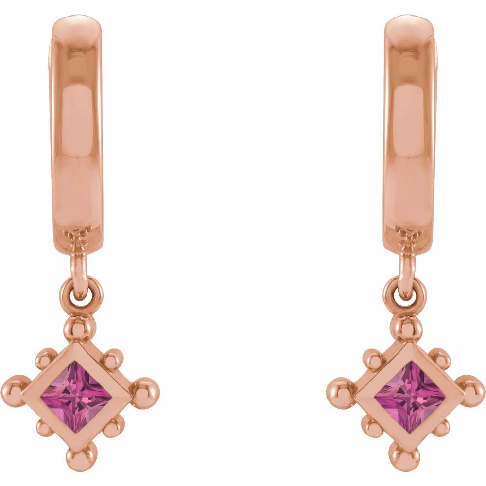 14k Rose Gold Pink Tourmaline Beaded Bezel-Set Hoop Drop Dangle Earrings