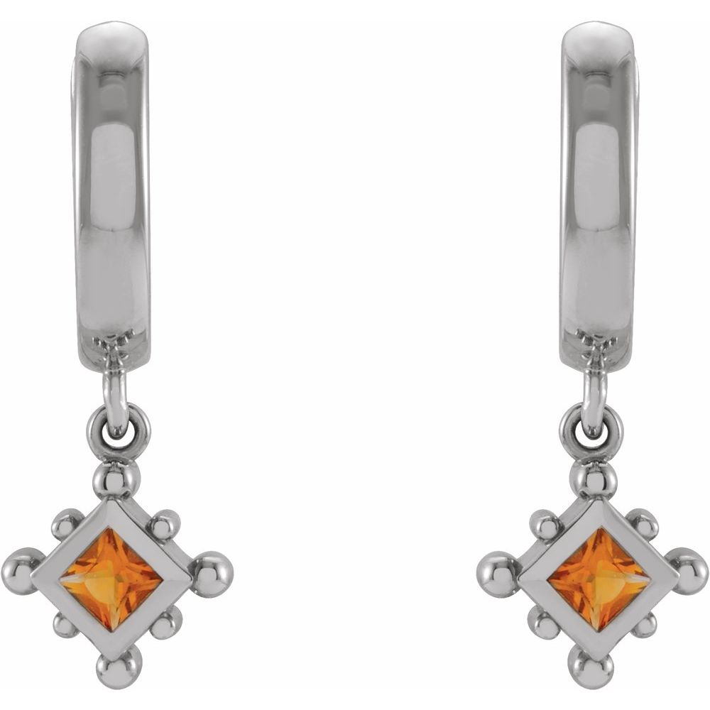 Platinum Citrine Beaded Bezel-Set Hoop Drop Dangle Earrings