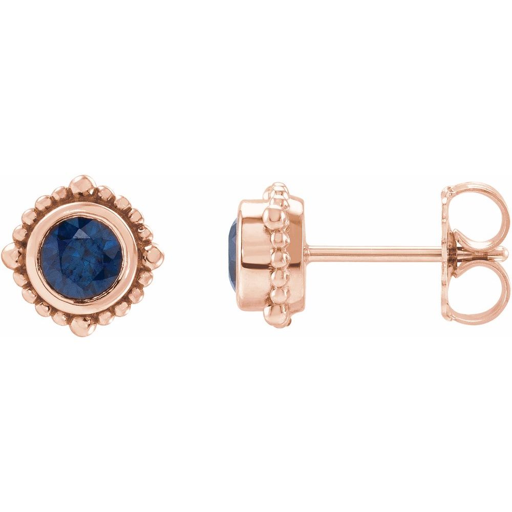 14k Rose Gold 5mm Round Shape Blue Sapphire Beaded Halo-Style Stud Earrings
