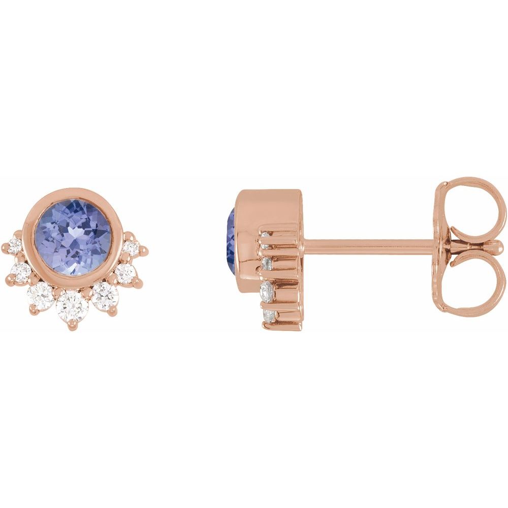 14k Rose Gold Tanzanite and 0.08 cttw Diamond Stud Earrings (G-H, I1)