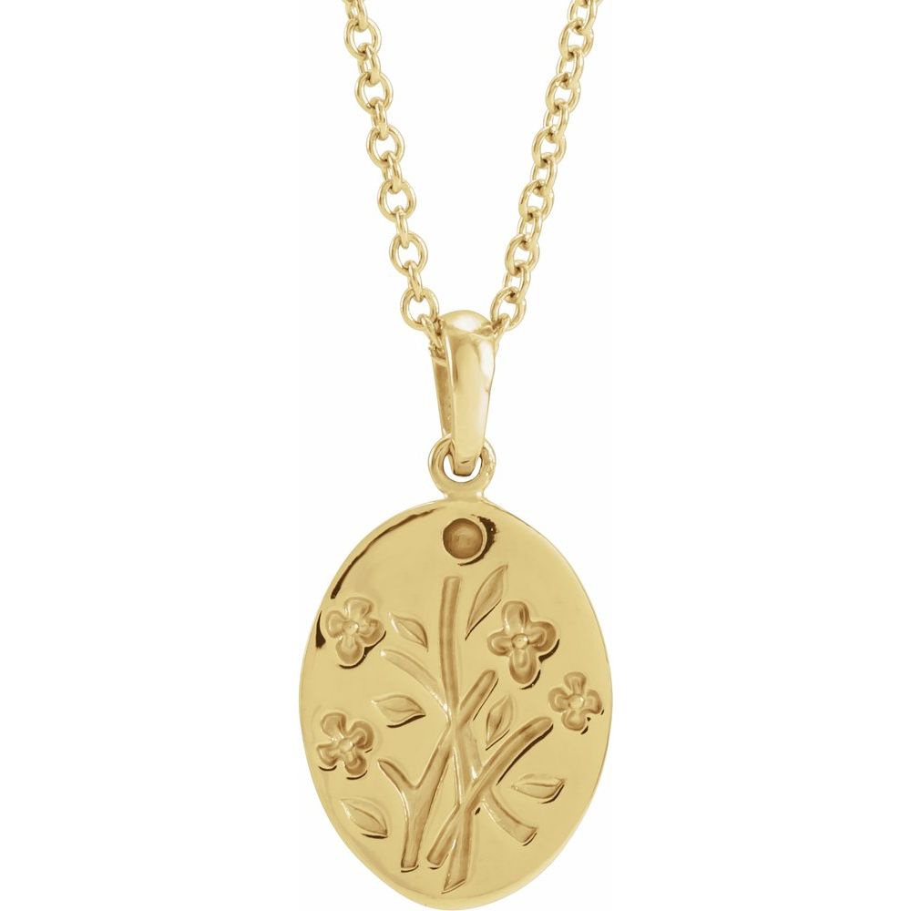 14k Yellow Gold Round Shape 1 One-Stone Wildflower Family Necklace for Approximately 0.015 cttw (17.4x8.93mm, Mounting Only, Not All Stones Included), 16-18"