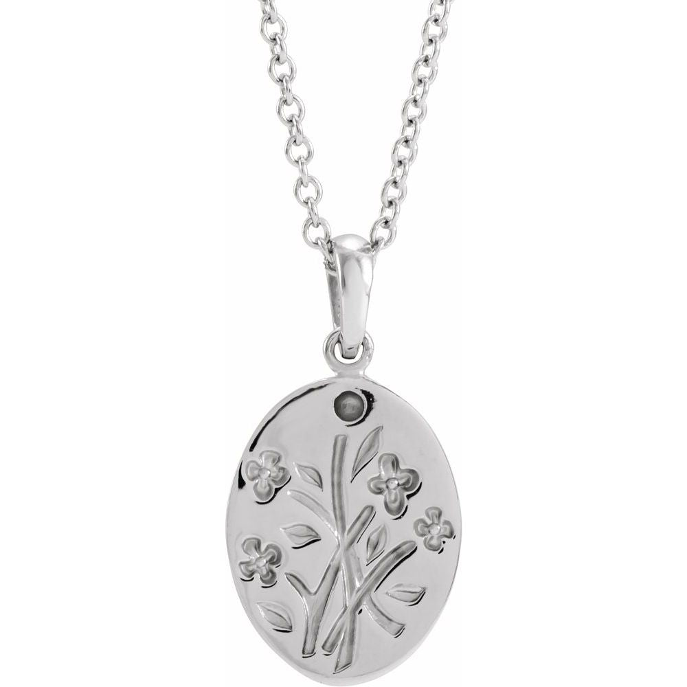 14k White Gold Round Shape 1 One-Stone Wildflower Family Necklace for Approximately 0.015 cttw (17.4x8.93mm, Mounting Only, Not All Stones Included), 16-18"
