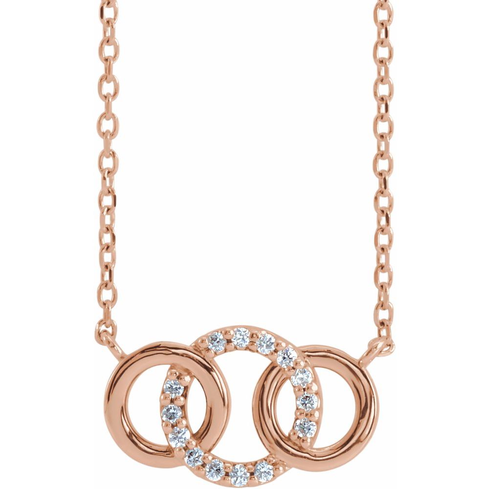 Description: 14k Rose Gold .05 cttw Diamond Interlocking Circle 18" Necklace