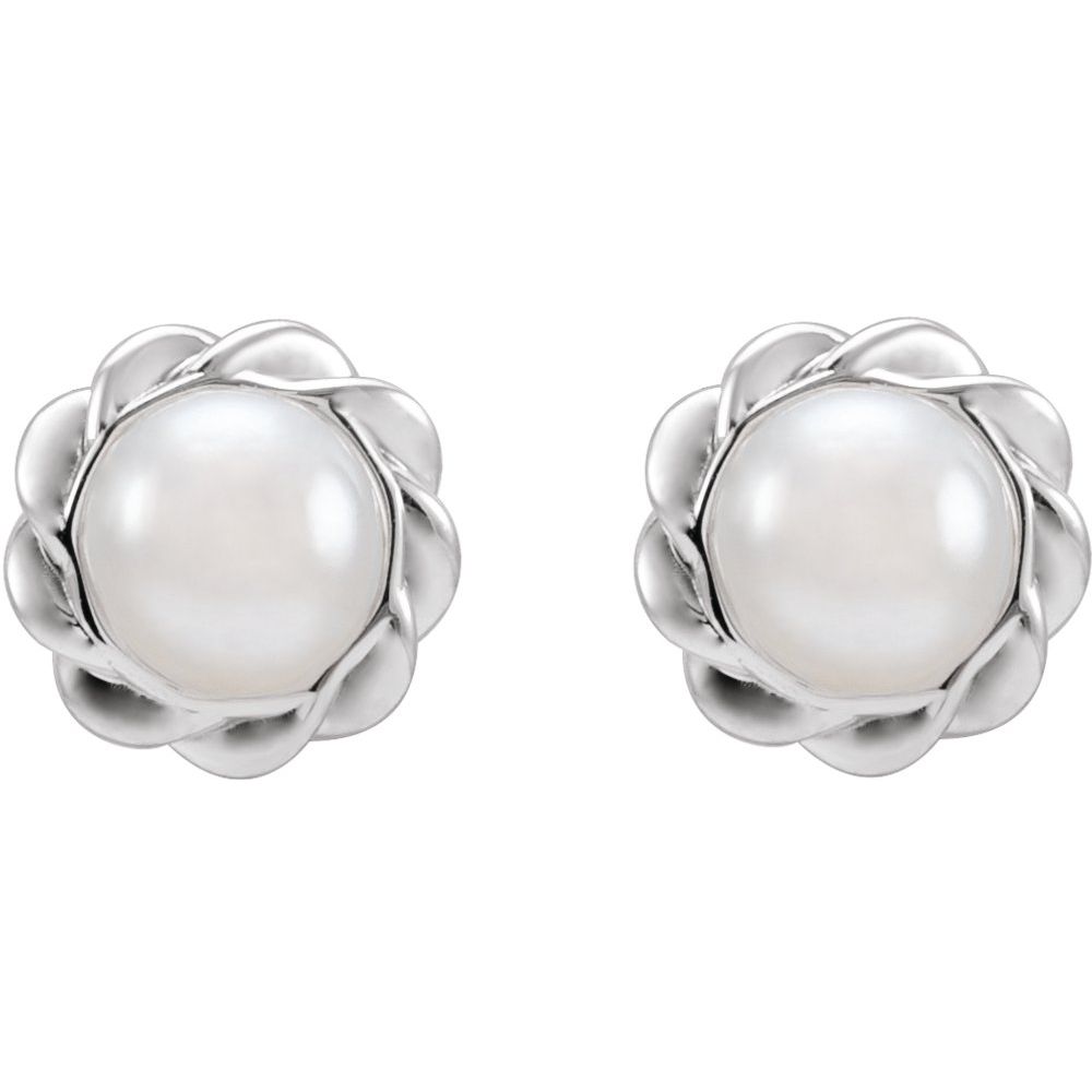 14k White Gold 5-5.9mm Cultured Freshwater Pearl Rope Stud Earrings