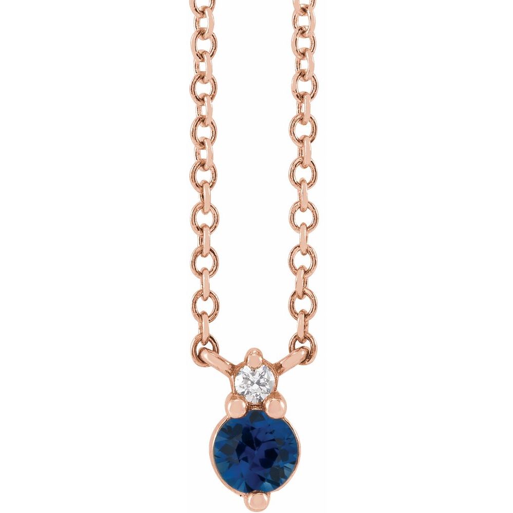 Description: 14k Rose Gold Blue Sapphire and .015 cttw Diamond 18" Necklace