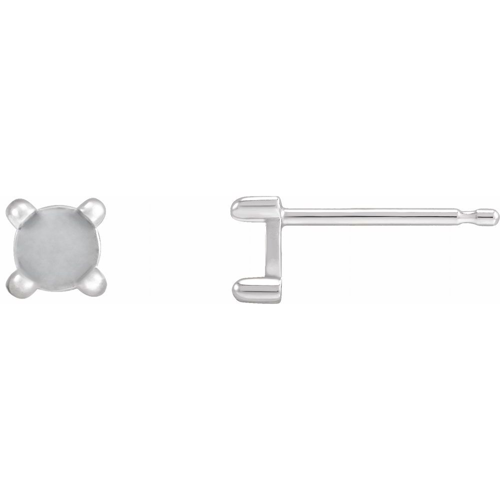 Platinum 5mm Round Shape Rose-Cut 4-Prong Claw Earring Mounting (Only One Piece Sold, Not the Pair, Mounting Only, Not All Stones Included)