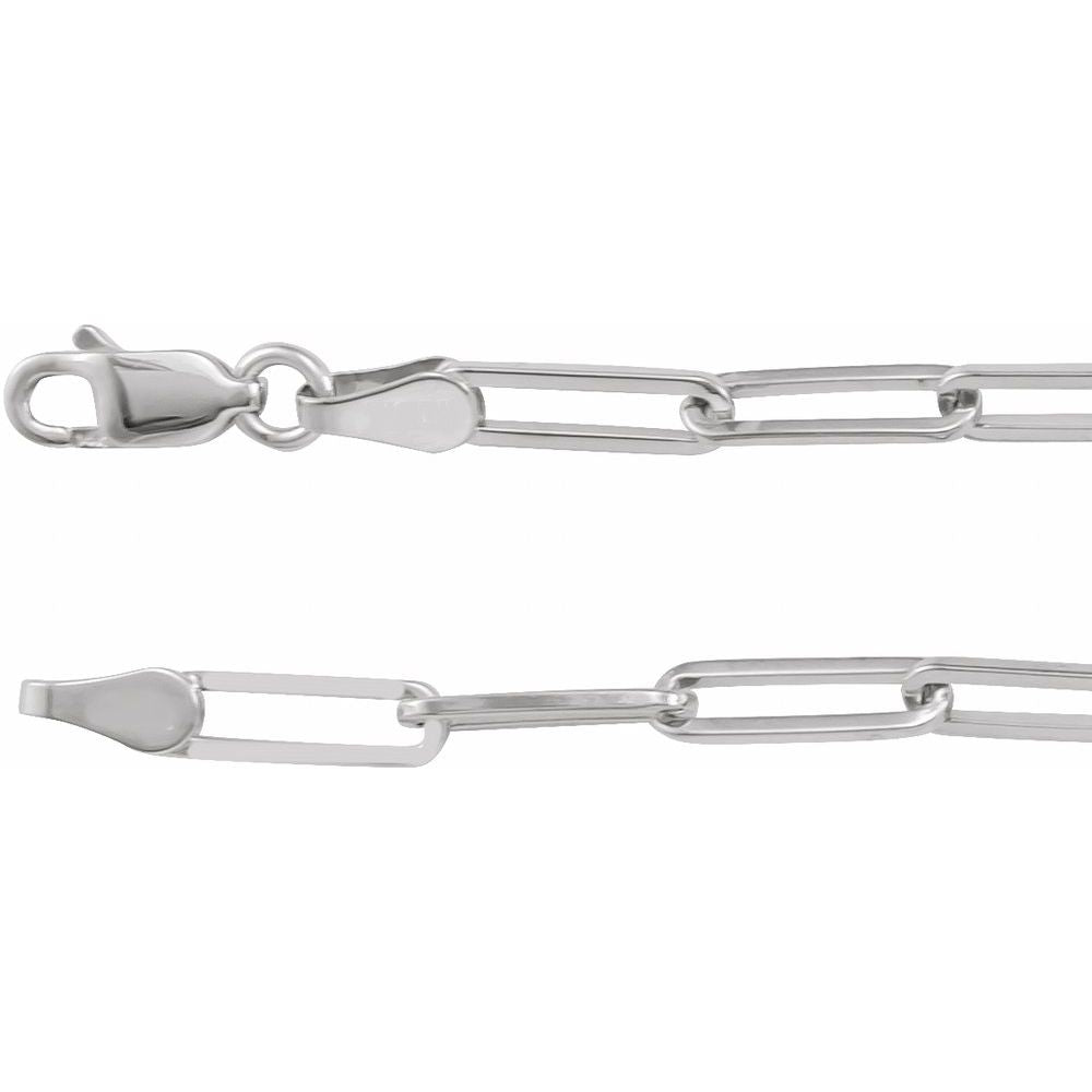 14k White Gold 1.95mm Elongated Flat Link Cable Chain Necklace, 16"