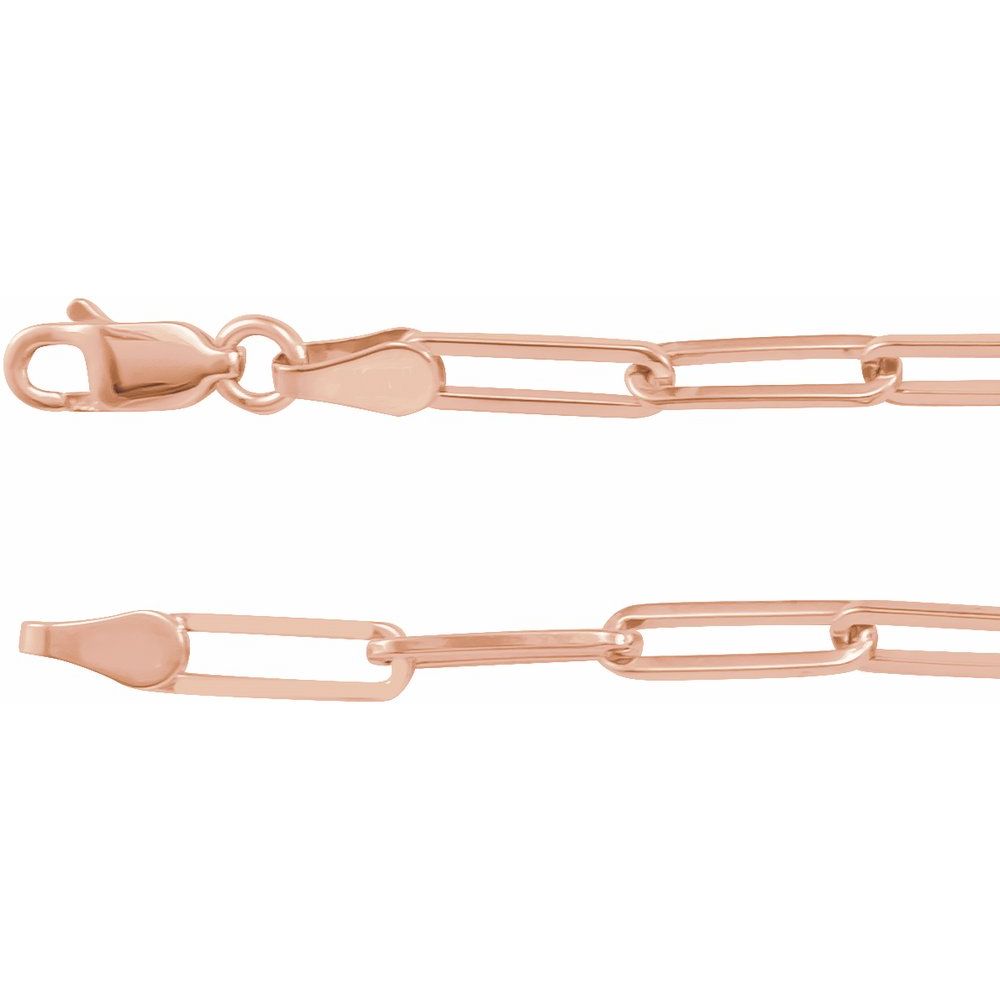 14k Rose Gold 1.95mm Elongated Flat Link Cable Chain Necklace, 18"