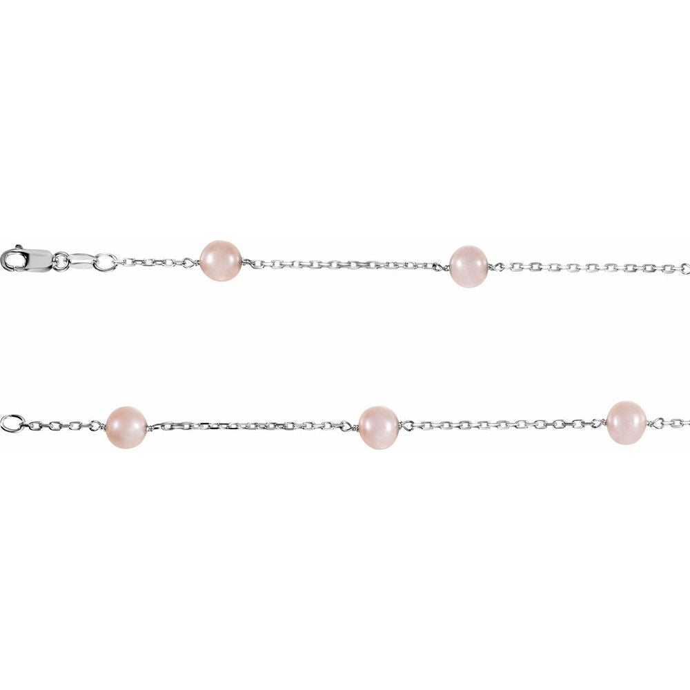 Sterling Silver Freshwater Cultured Pink Pearl Station Necklace, 18"