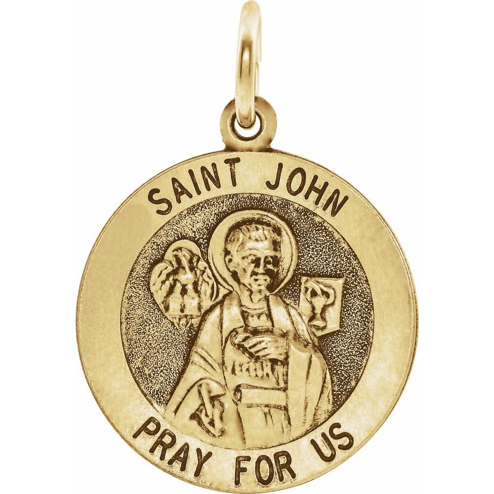 14k Yellow Gold 15mm Round Shape Saint John the Evangelist Medal Religious Pendant