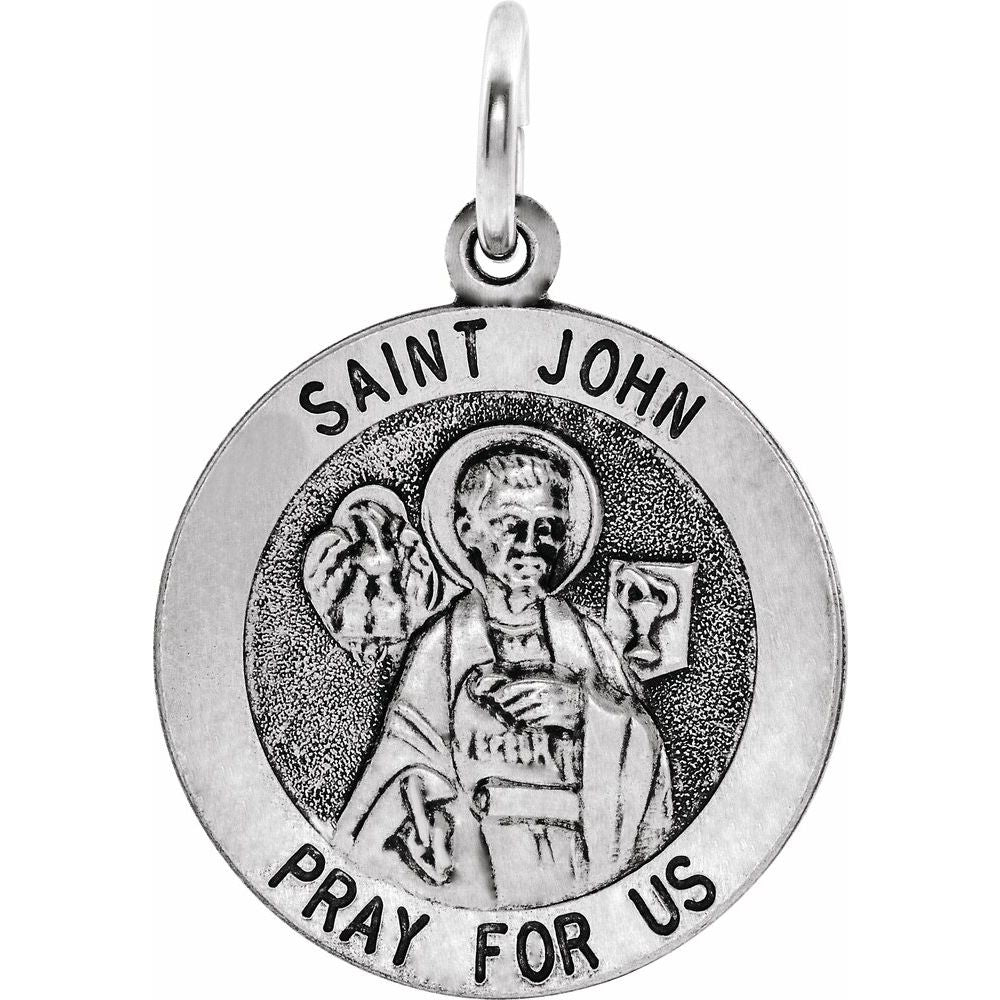 Description: Sterling Silver 18mm Round St. John the Evangelist Medal