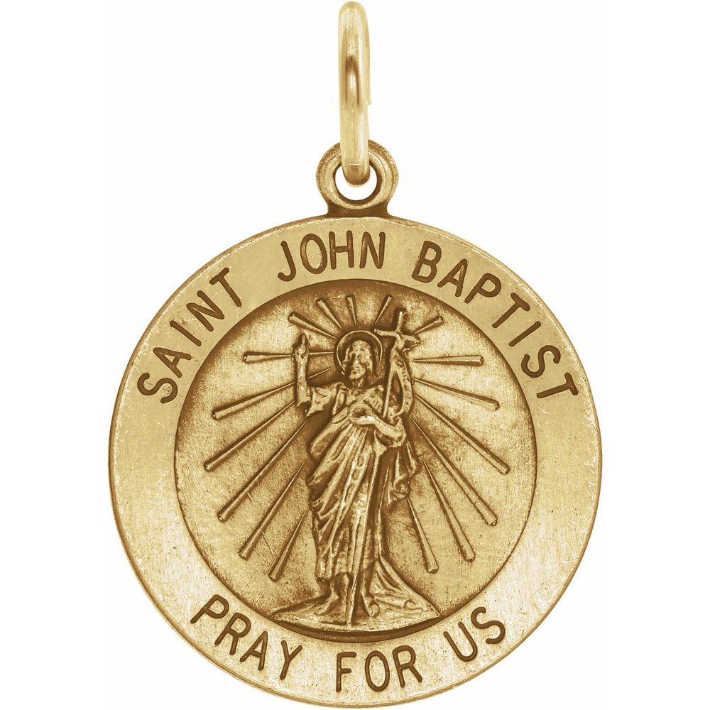 14k Yellow Gold 12mm Round Shape Saint John the Baptist Medal Religious Pendant