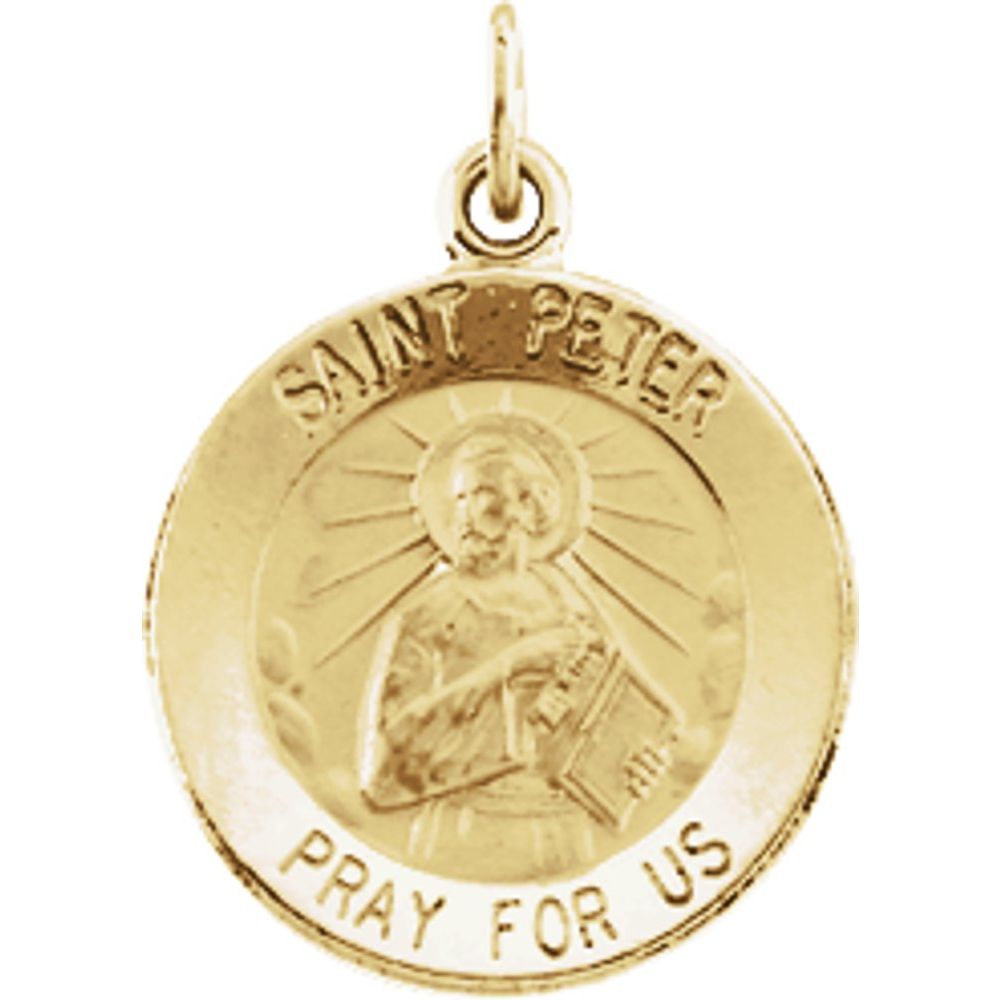 Description: 14k Yellow Gold 15mm Round St. Peter Medal