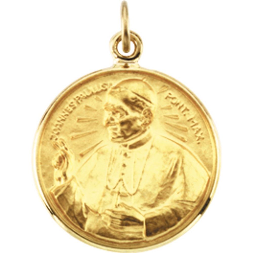 Description: 14k Yellow Gold 15mm Round Pope John Paul II Medal