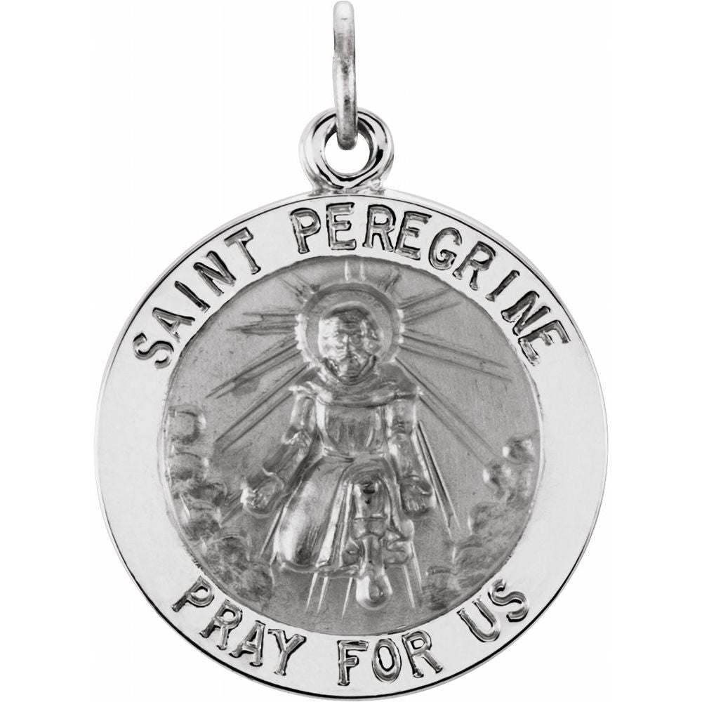 Description: 14k White Gold 18mm Round St. Peregrine Medal