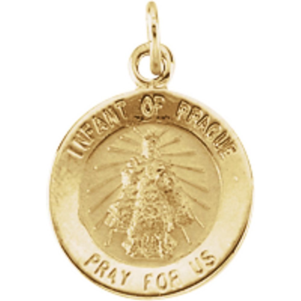 Description: 14k Yellow Gold 12mm Round Infant of Prague Medal