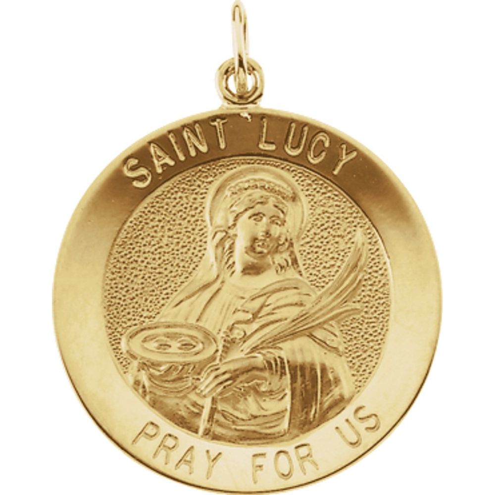 Description: 14k Yellow Gold 22mm Round St. Lucy Medal