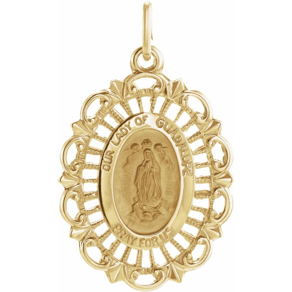 Description: 14k Yellow Gold 21.5x15mm Oval Our Lady of Guadalupe Medal