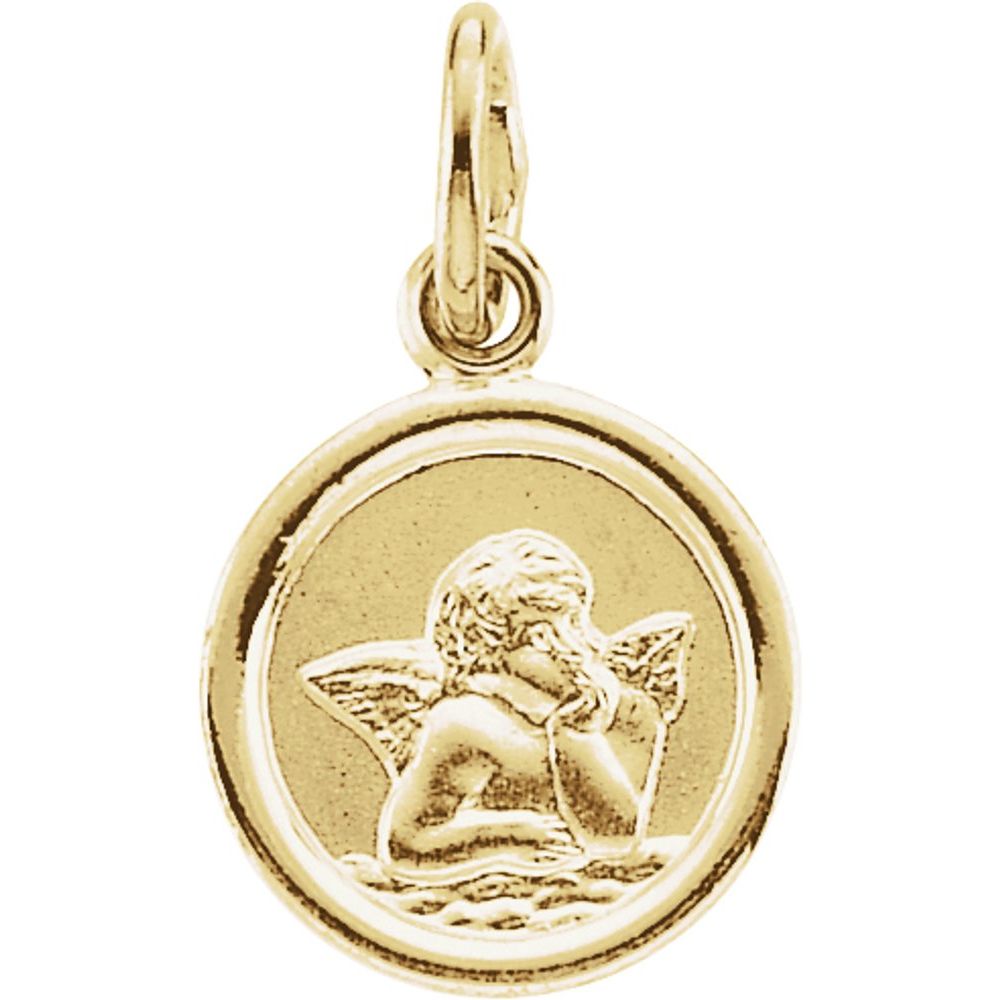 Description: 14k Yellow Gold 10mm Round Cherub Angel Medal