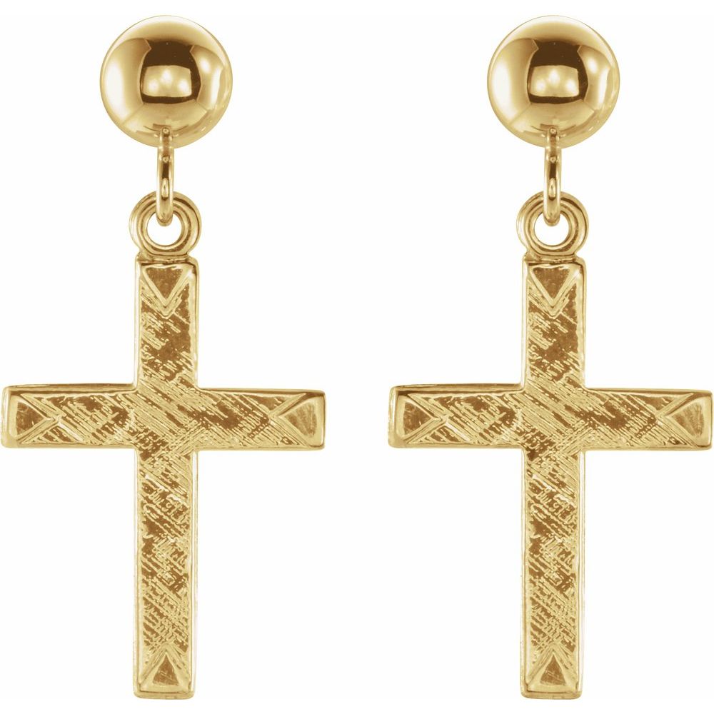 14k Yellow Gold Cross Religious Earrings (11x8mm)