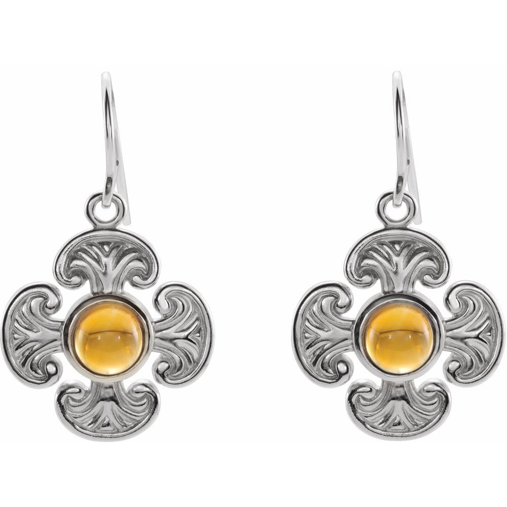 14k White Gold Citrine Maltese Cross Religious Earrings