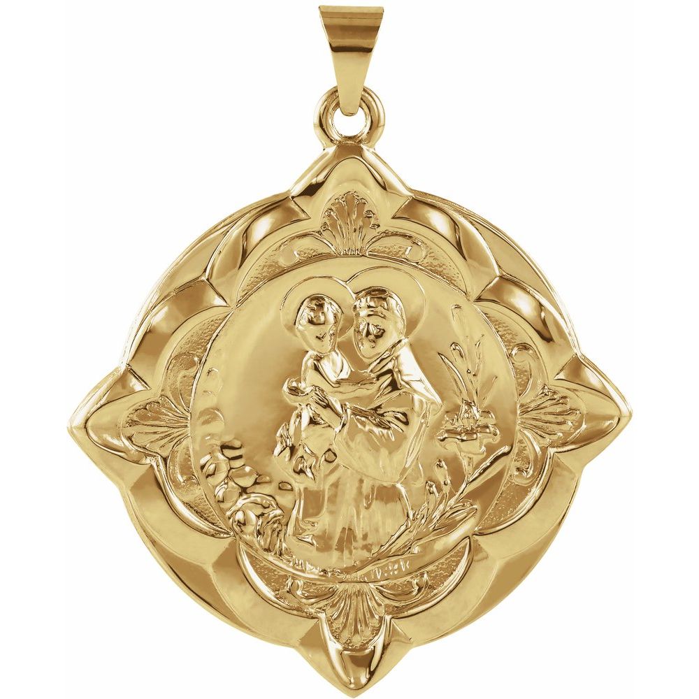 14k Yellow Gold Saint Anthony of Padua Medal Religious Pendant (31x31mm)