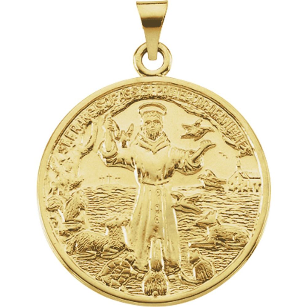 Description: 14k Yellow Gold 26mm St. Francis of Assisi Medal