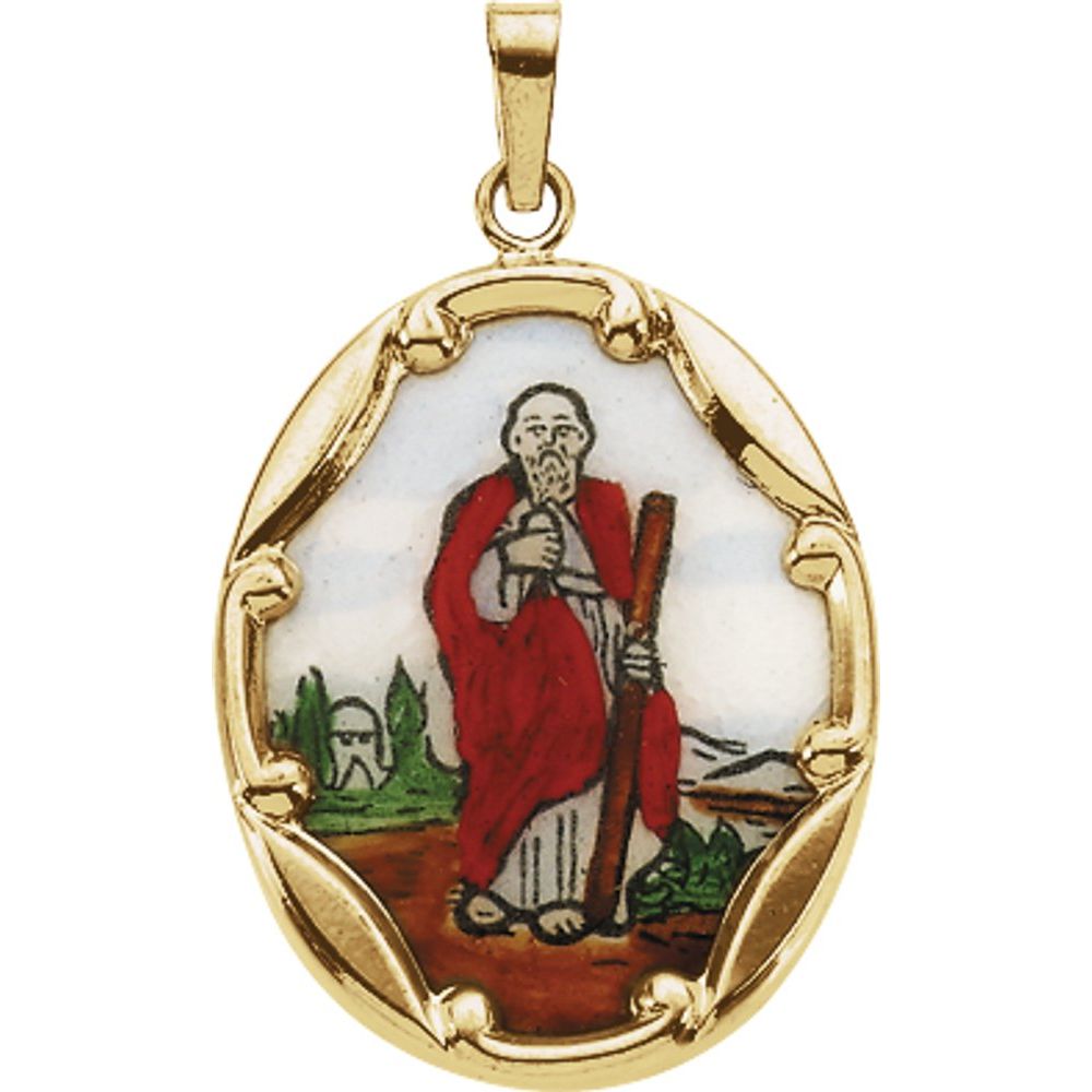 14k Yellow Gold Oval Shape Hand Painted Porcelain Saint Jude Medal Religious Pendant (25x19.5mm)