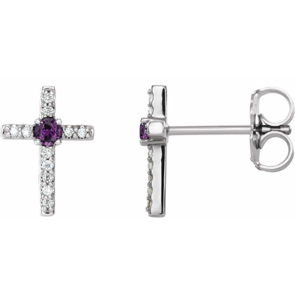 14k White Gold Alexandrite and 0.05 cttw Diamond Cross Religious Earrings (G-H, I1)