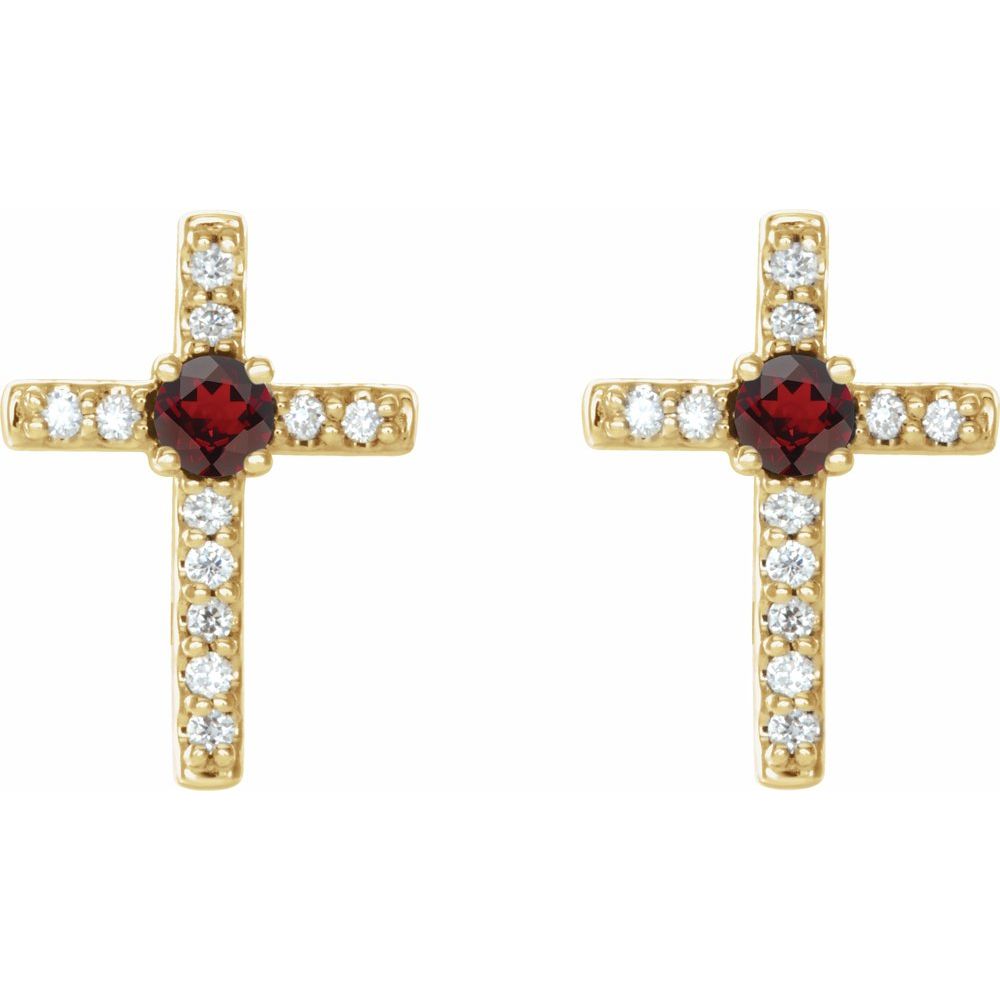 14k Yellow Gold Mozambique Garnet and 0.05 cttw Diamond Cross Religious Earrings (G-H, I1)