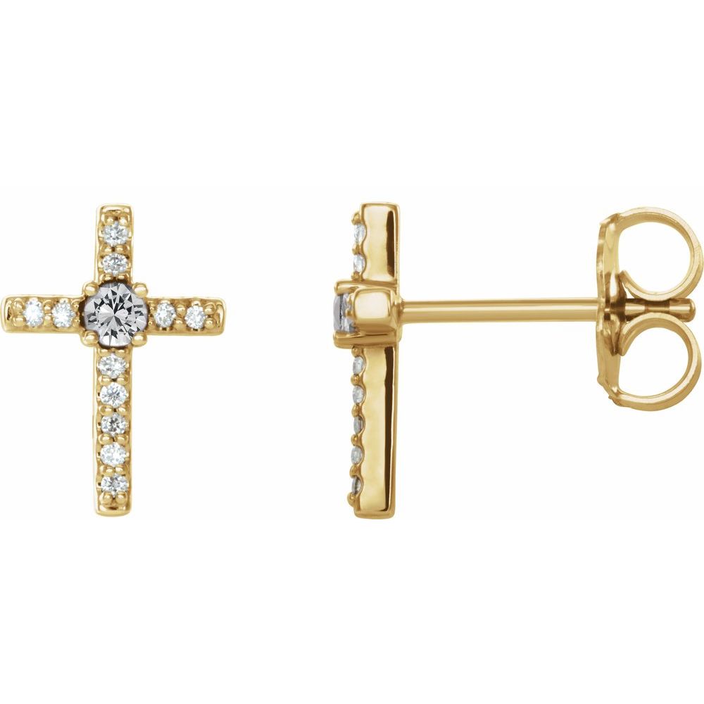 14k Yellow Gold Diamond Cross Religious Earrings (1/8 cttw, G-H, I1)