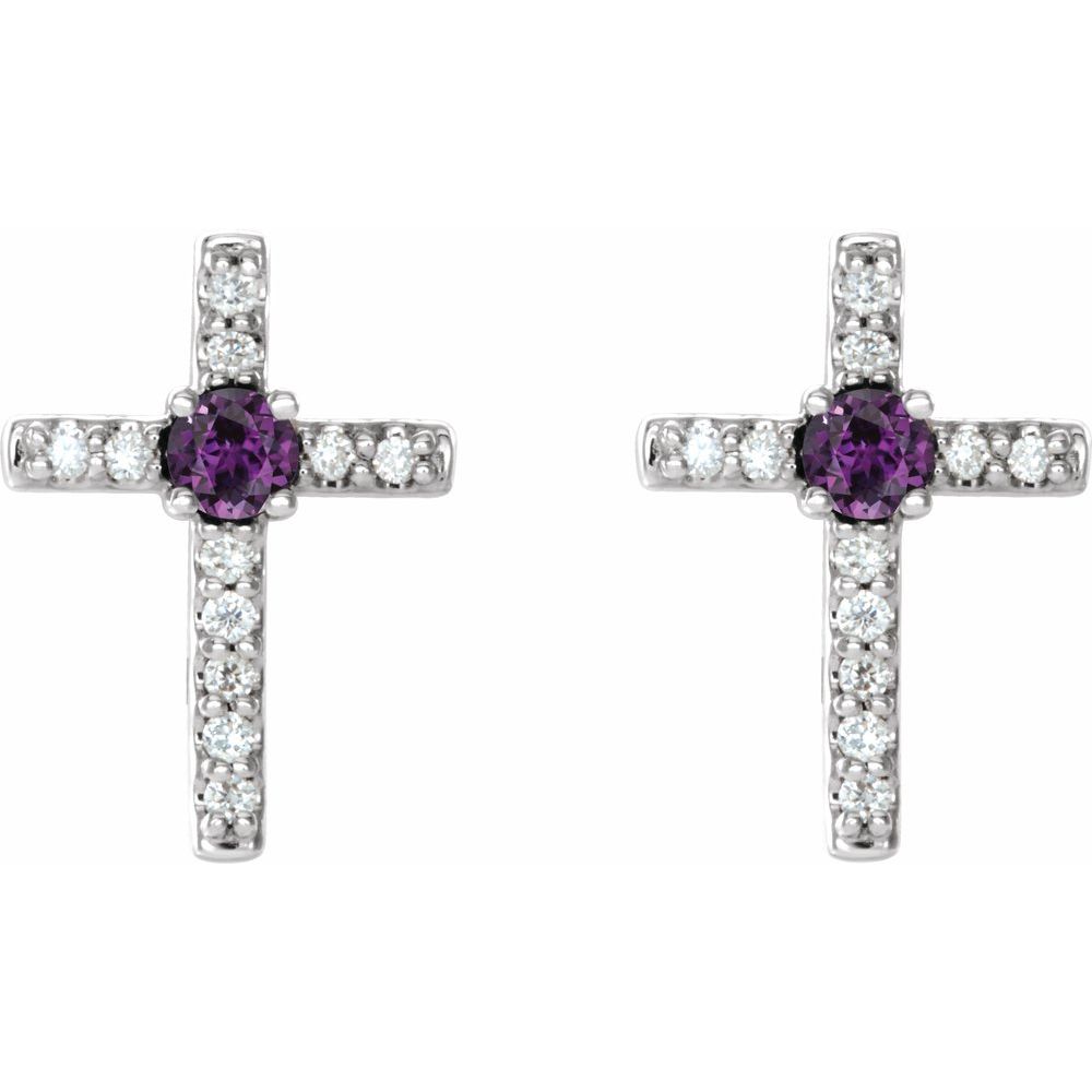 Platinum Alexandrite and 0.05 cttw Diamond Cross Religious Earrings (G-H, SI2-SI3)
