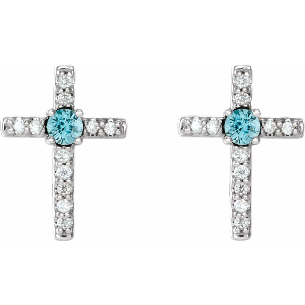 Platinum Blue Zircon and 0.05 cttw Diamond Cross Religious Earrings (G-H, SI2-SI3)