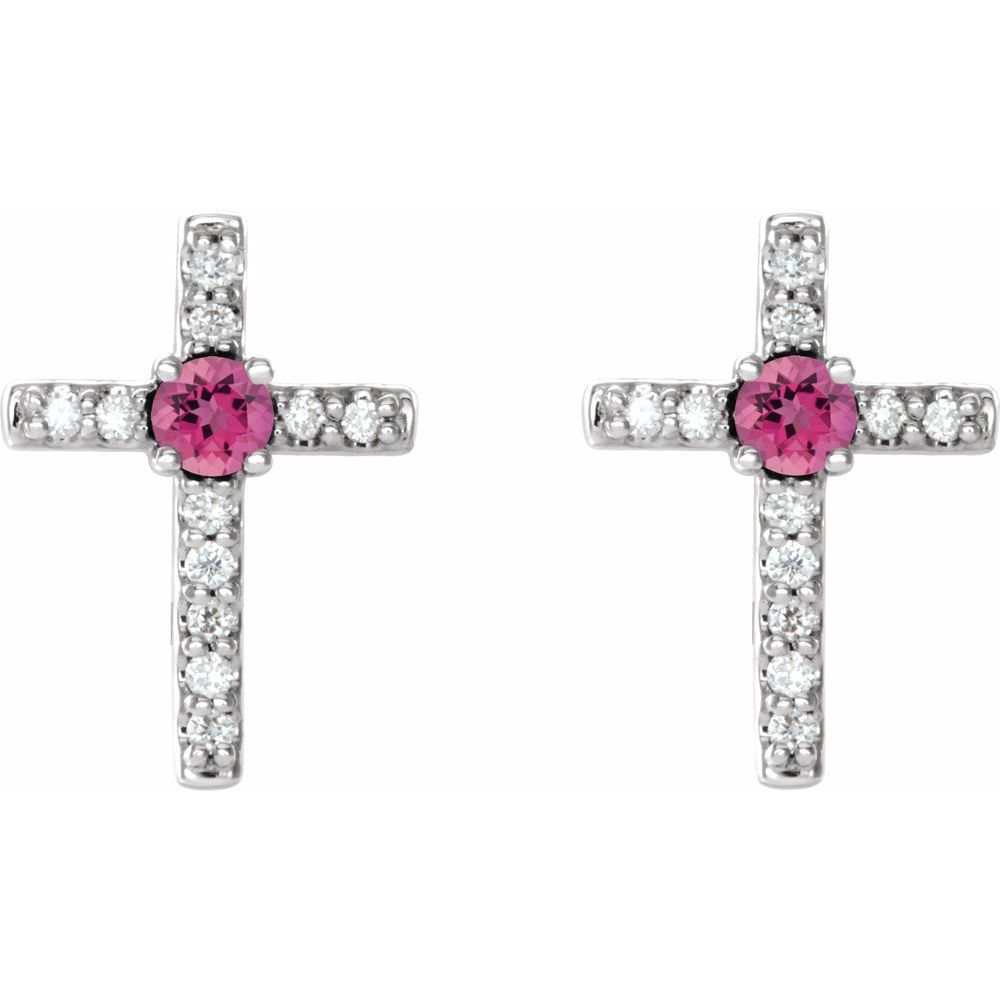 Sterling Silver Pink Tourmaline and 0.05 cttw Diamond Cross Religious Earrings (G-H, I1)