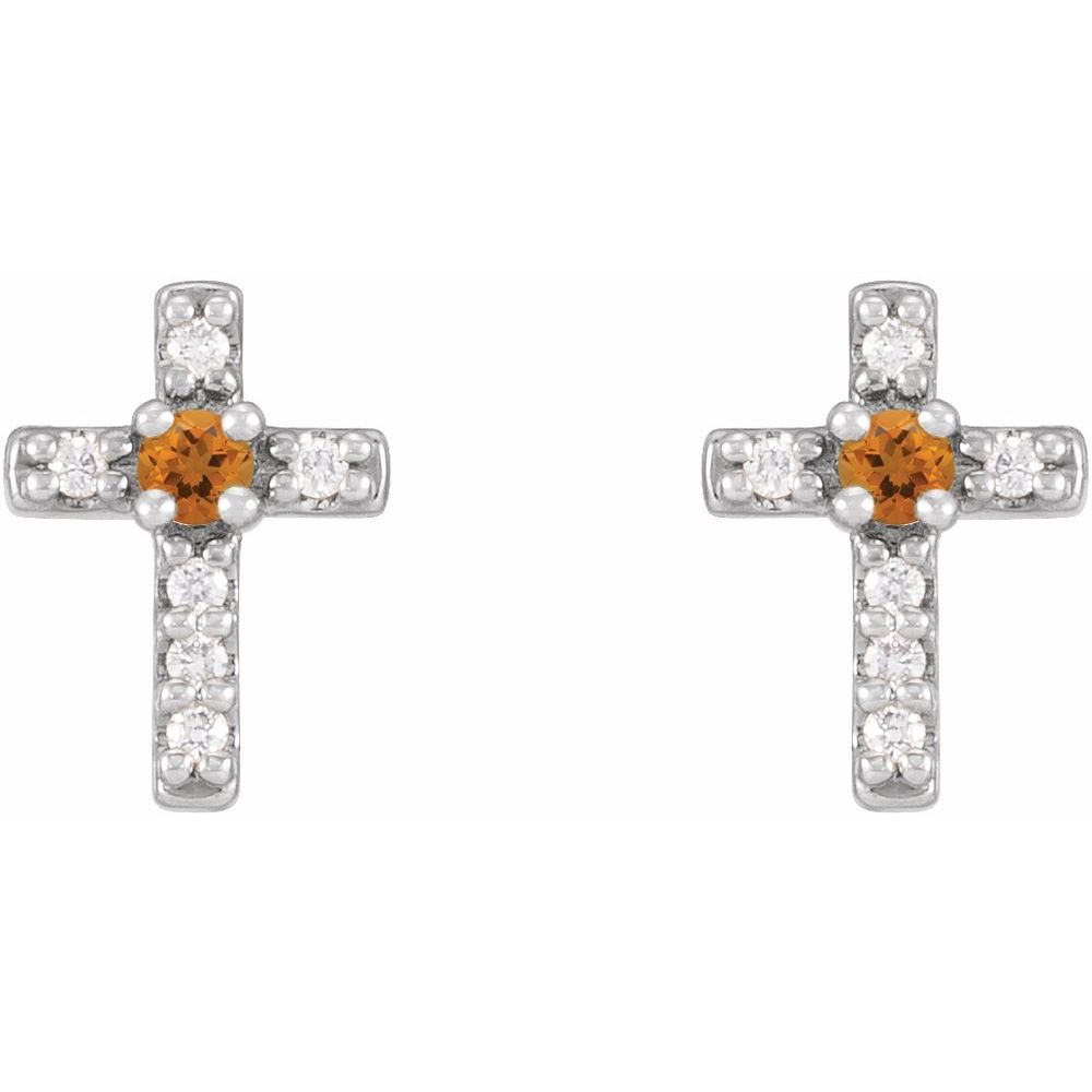 Sterling Silver Citrine and 0.03 cttw Diamond Cross Religious Earrings (G-H, I1)