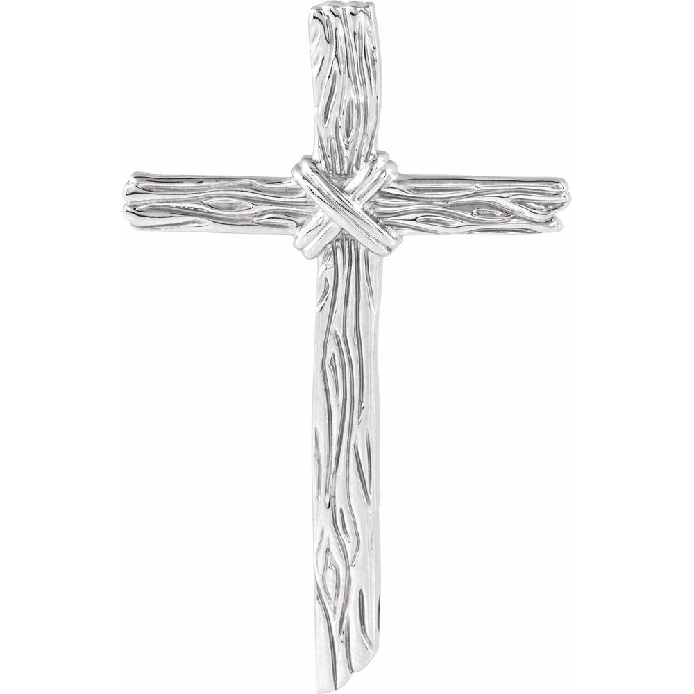 Description: 14k White Gold 50.75x32.25mm Woodgrain Cross Pendant