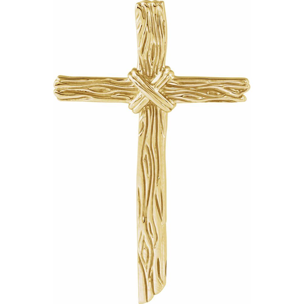 Description: 18k Yellow Gold 50.75x32.25mm Woodgrain Cross Pendant