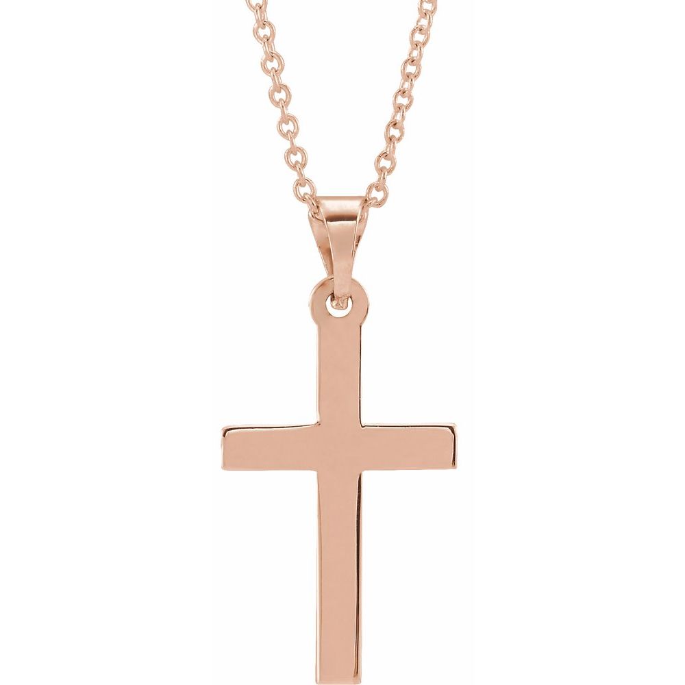 14k Rose Gold Religious Cross Necklace (17x11.5mm), 18"
