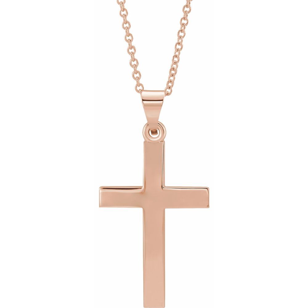 14k Rose Gold Religious Cross Necklace (20x13.7mm), 18"